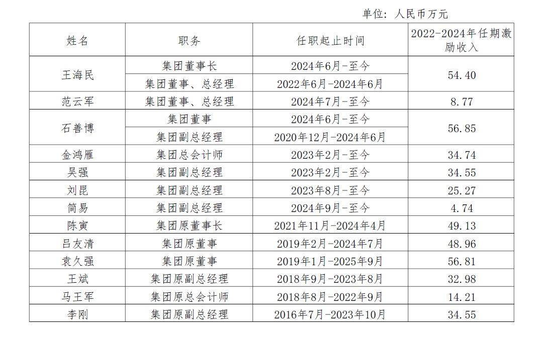 中國旅游集團有限公司企業(yè)負責人2022-2024年任期激勵收入情況